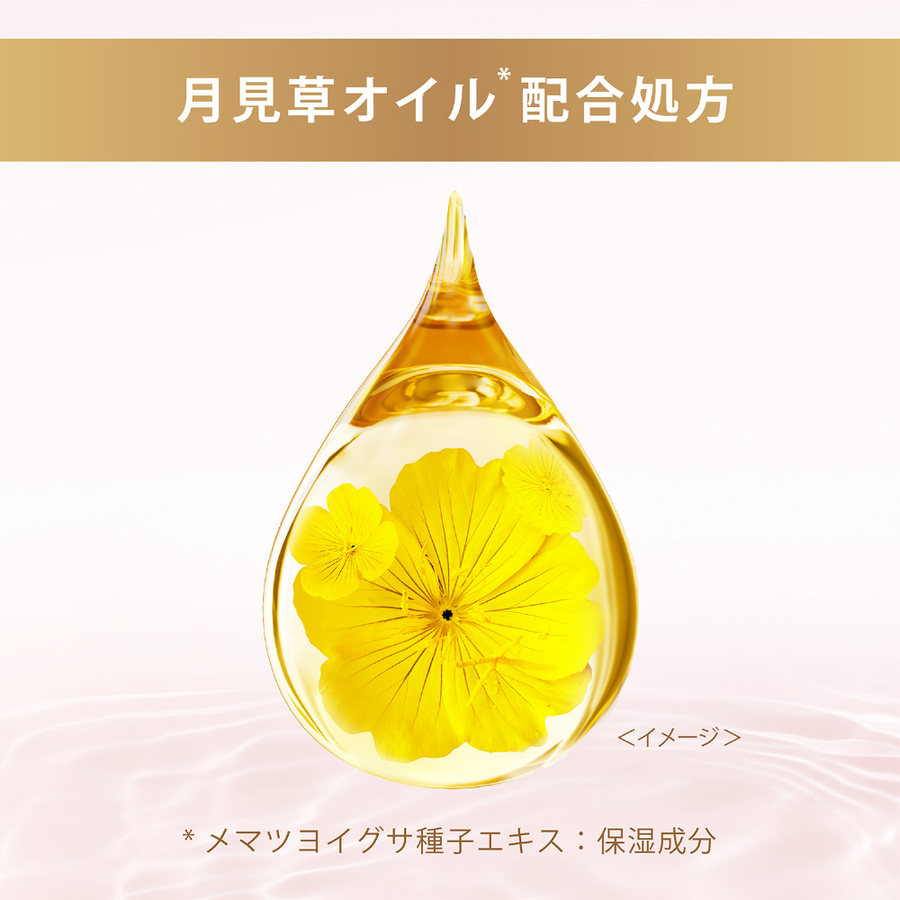 髪、地肌、心の*1トータルビューティーケア発想。月見草色の濃密ヘアオイルで補修。ダメージ補修&ツヤコーティングで髪の芯まで補修・保湿しながら乾燥や熱ダメージから守る。ダメージケアと色ツヤキープしたい方へ。