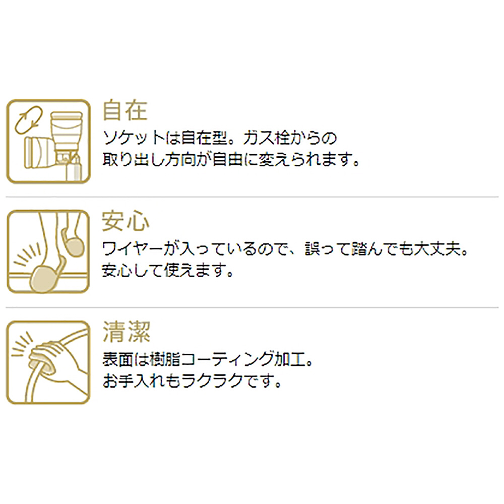 ガスファンヒーター、ガスストーブを使って暖房する場合は必ず別売のガスコードが必要です。ご使用されるお部屋に合った長さのガスコードをお選びください。