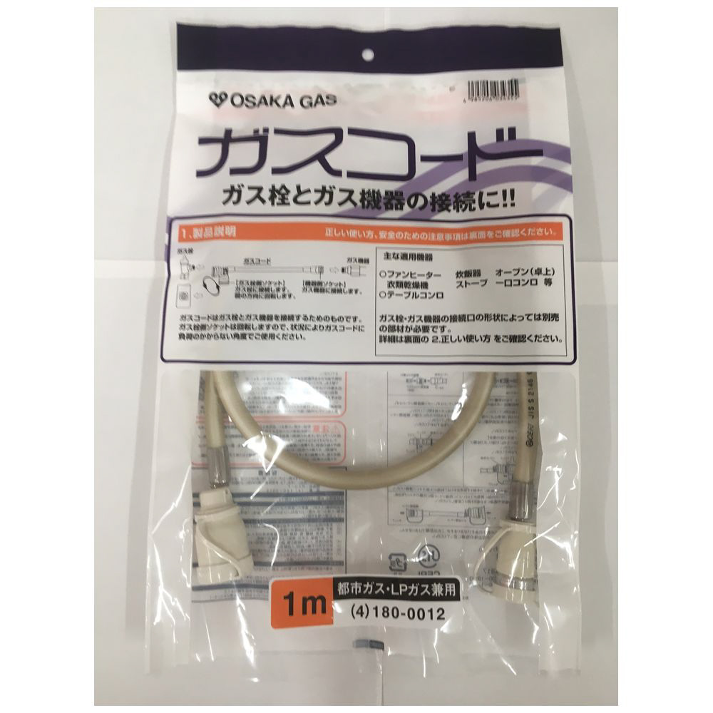 | 商品名 | 都市ガス(13A)・プロパンガス(LP)兼用ガスコード 長さ1.0m 4-180-0012 【864】 |