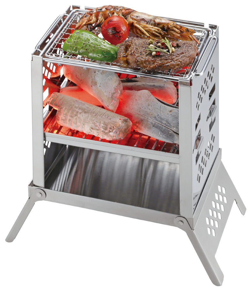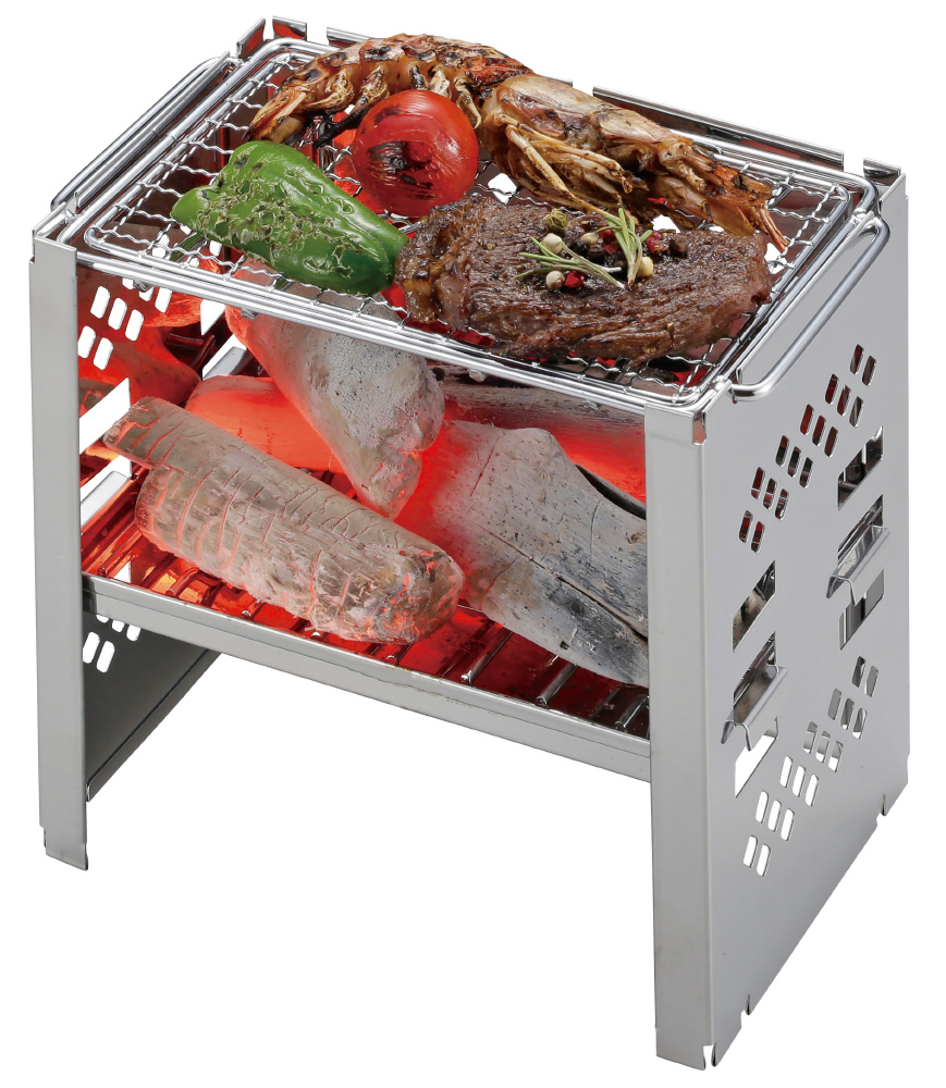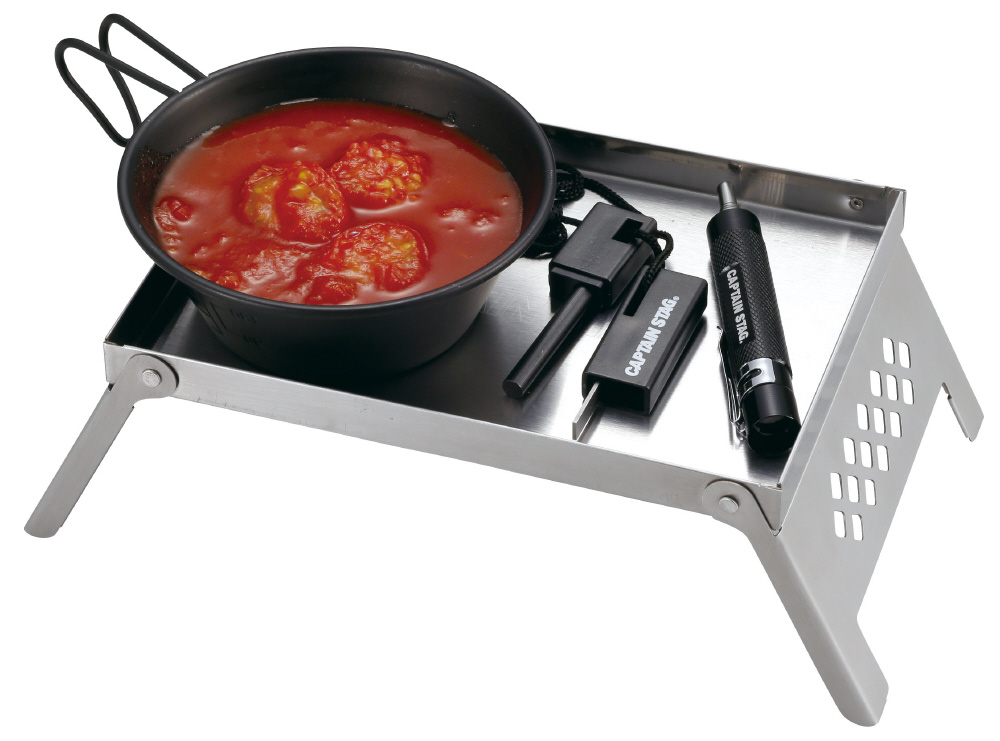 カマドスマートグリルB5型をのせる土台。ミニテーブルとしても使えます。丈夫で錆びにくいステンレス製。