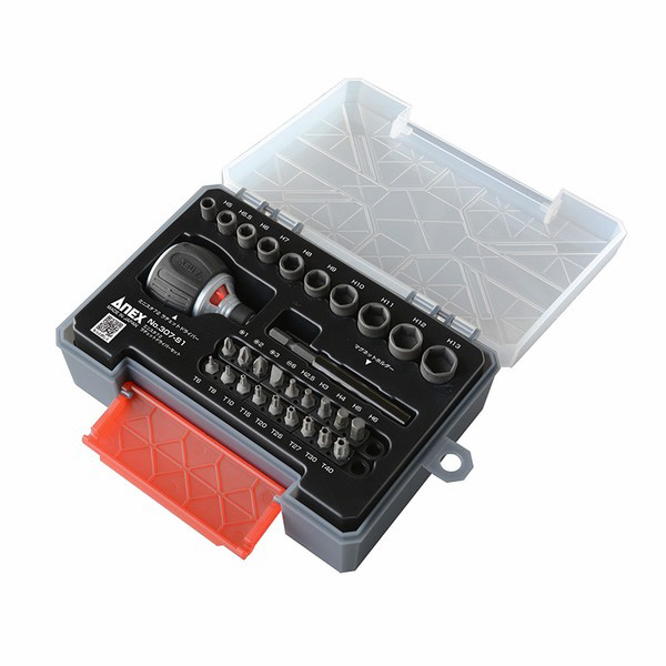 ●プラス・マイナス・六角レンチ・ヘクスローブ・ボックス全28サイズのビットが収納。