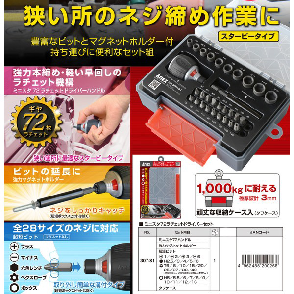 | 商品名 | ミニスタ72ラチェットドライバーセット 307-S1 |