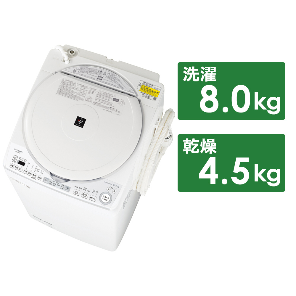 縦型乾燥洗濯機 ホワイト系 ES-TX8G-W [洗濯8.0kg /乾燥4.5kg /ヒーター乾燥(排気タイプ) /上開き]