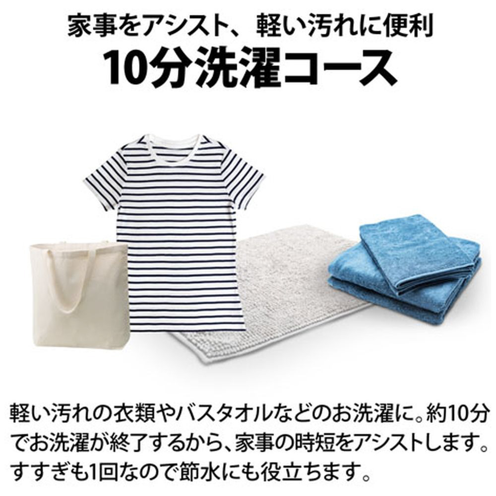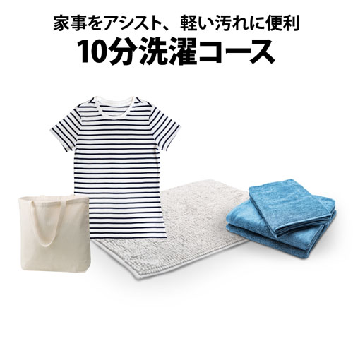 軽い汚れの洗濯に便利な10分洗濯コースを搭載しています。