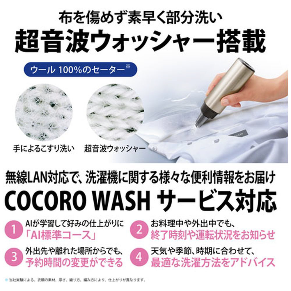 また、無線LAN対応でスマホ連携ができるCOCORO WASHサービスにも対応。外出先からの予約時間の変更等ができます。