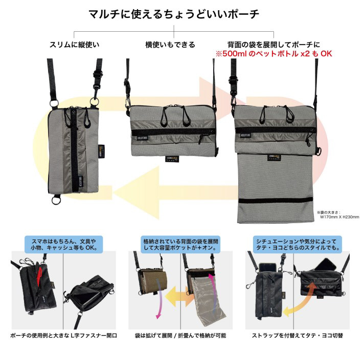 タテでもヨコでも使える、スマホサイズのミニポーチ。