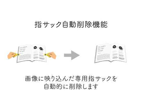 AIによる画像補正に加えて、レーザーが本の歪みを捉え、高い補正を実現します。