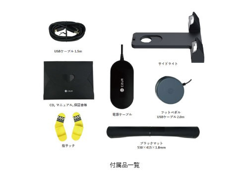 付属品 サイドライト、USBケーブル、電源アダプター、フットペダル、ドキュメントパッド、指サック、インストールCD、ユーザーマニュアル、取扱説明書、保証書