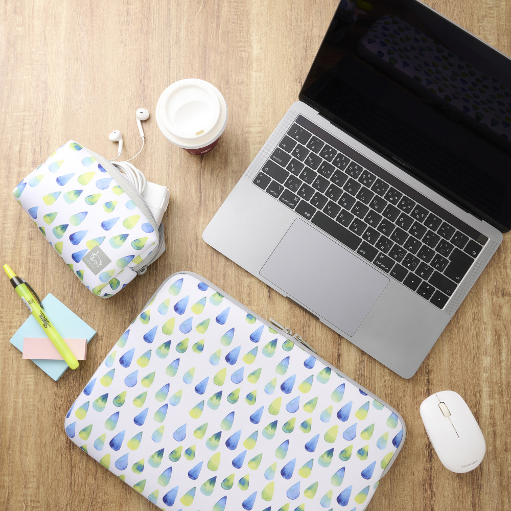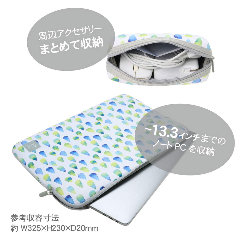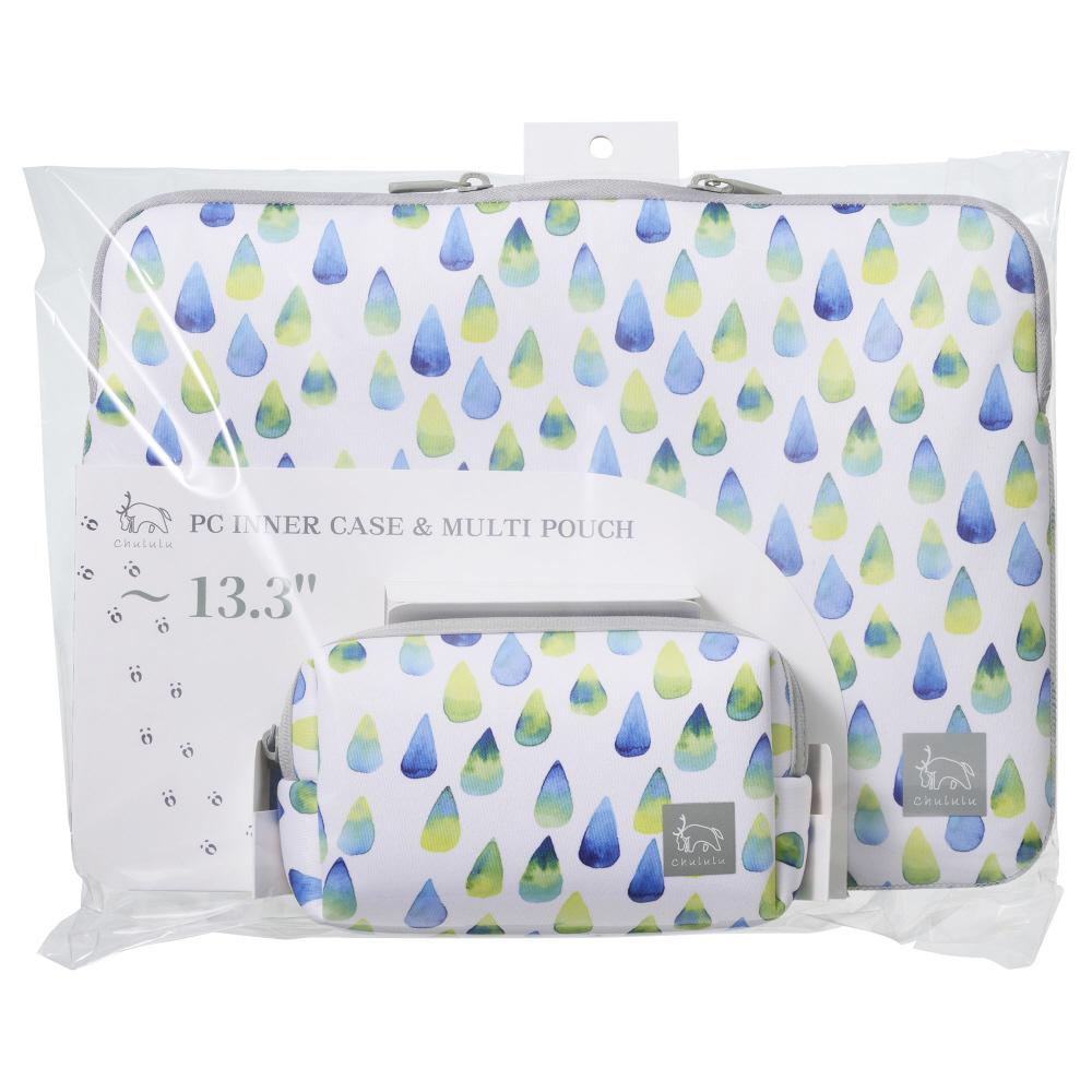 ノートパソコン対応[〜13.3インチ] PCインナーケース&マルチポーチ ウォータードロップスグリーン SCH-PCMP133GR