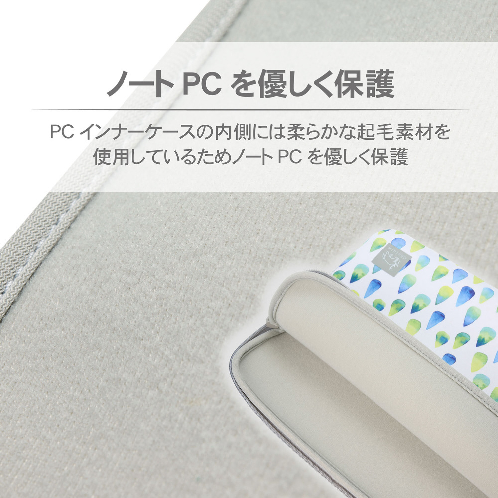 PCインナーケースの内側は、柔らかな起毛素材を使用しているため、ノートPCを優しく保護してくれます。