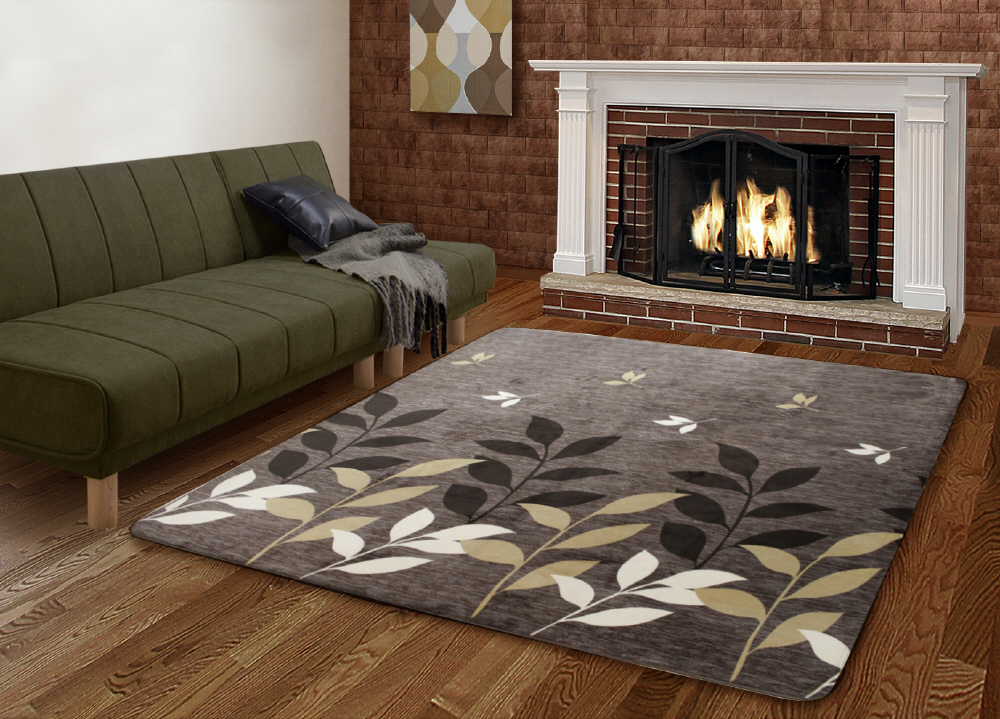 【センターラグ】フランネル厚手センターラグ ビッグリーフ 長方形 ブラウン 959821BR [200x240cm]