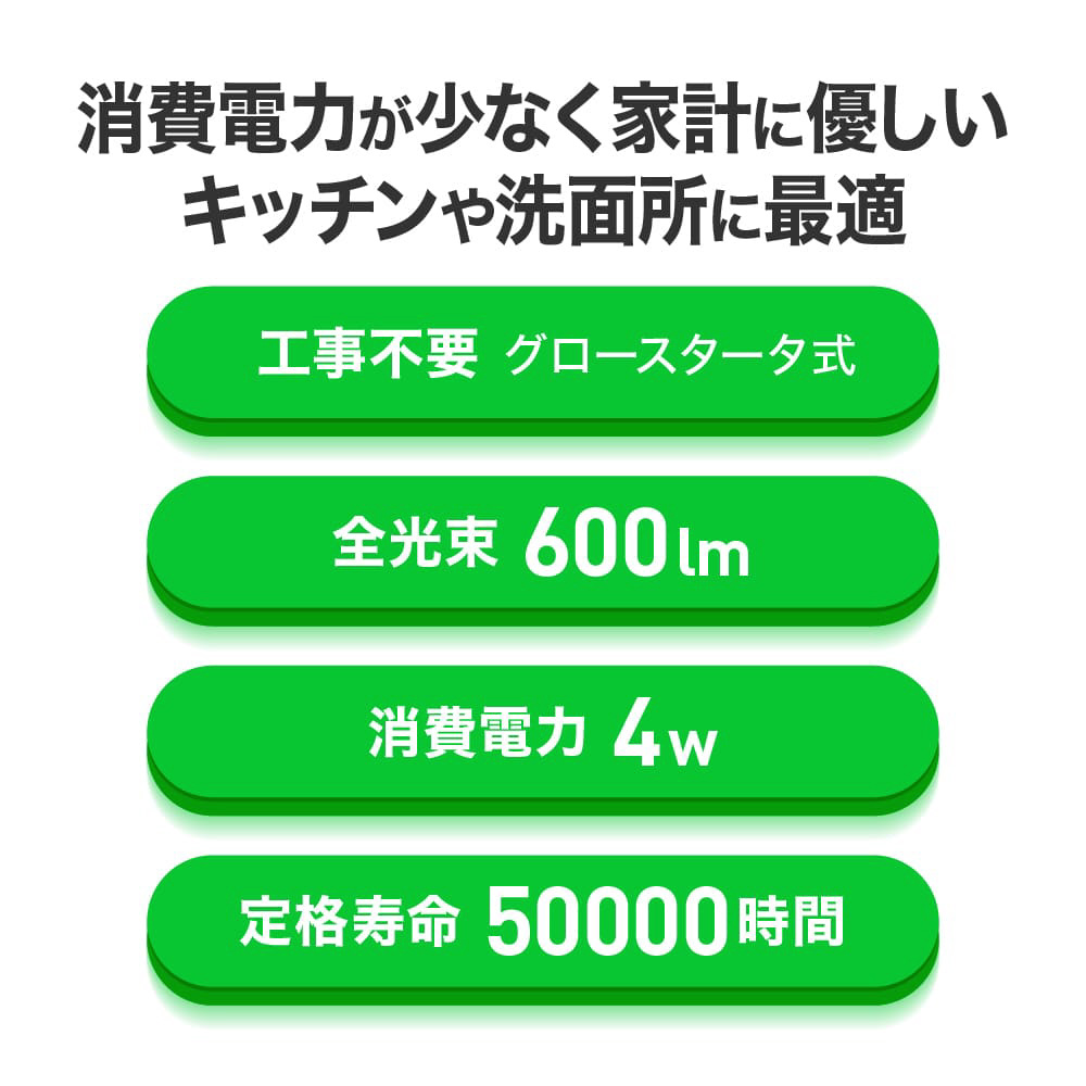 ・長寿命 蛍光灯と比べて約4倍長持ち ※従来の蛍光灯12000時間との比較