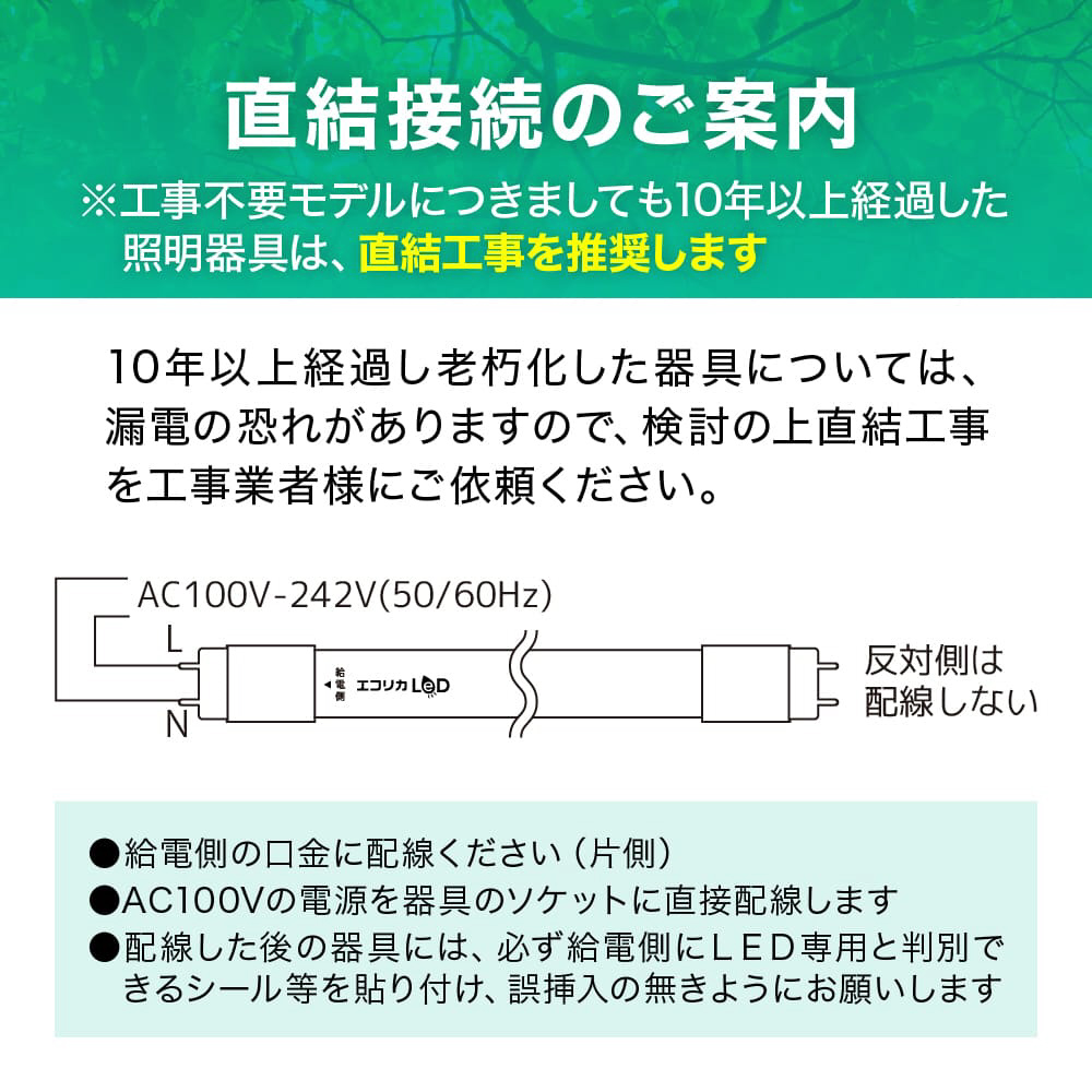 | 商品名 | 直管形LEDランプ 工事不要 グロースタータ式(FL蛍光灯専用) ECL-LG10YN [G13 /10形 /昼白色 /1本] |