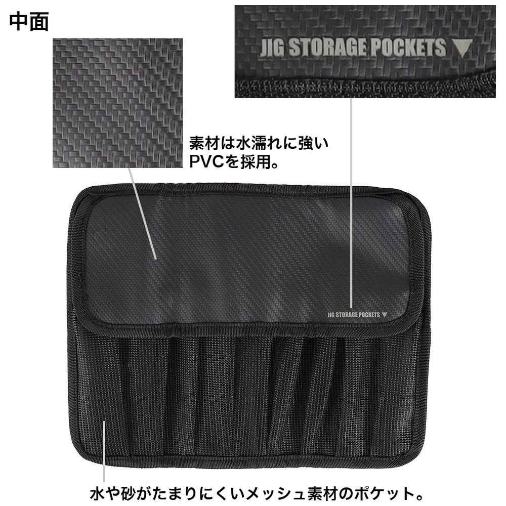 ■水や砂がたまりにくいメッシュ素材のポケットには、最長20cmのジグを9本収納可能です。