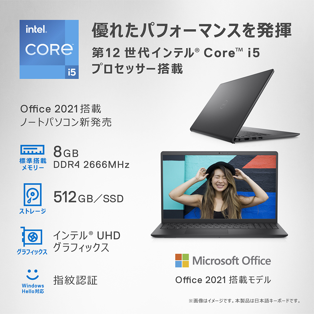 ノートパソコン Inspiron 15 3520 カーボンブラック NI355-CNHBCB [15.6型 /Windows11 Home /intel Core i5 /メモリ:8GB /SSD:512GB /Office HomeandBusiness /日本語版キーボード /2022年夏モデル]