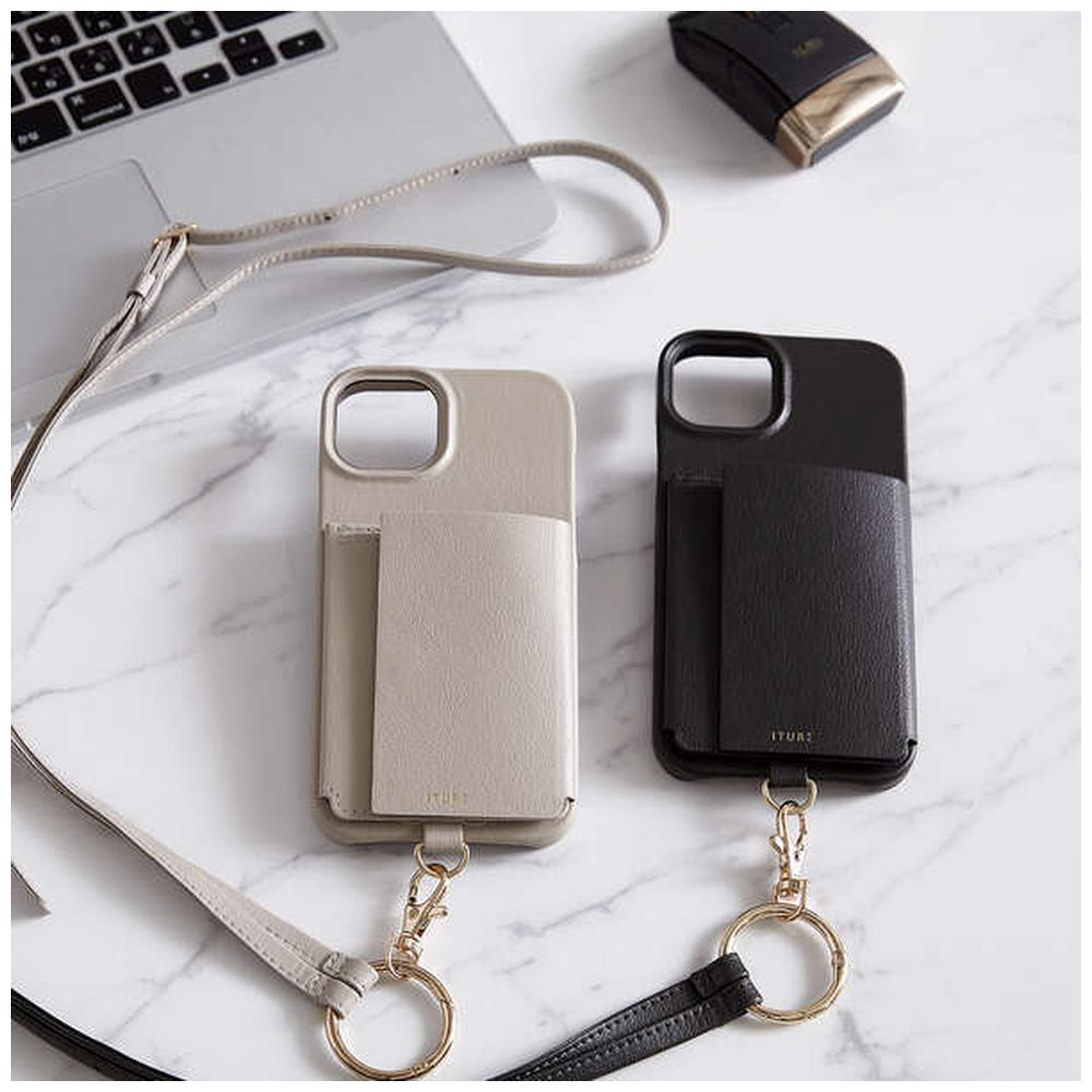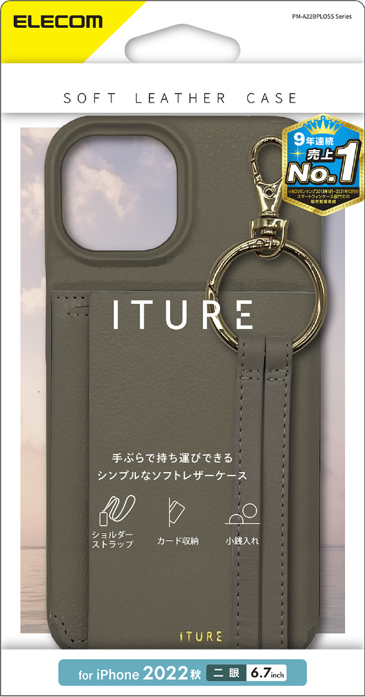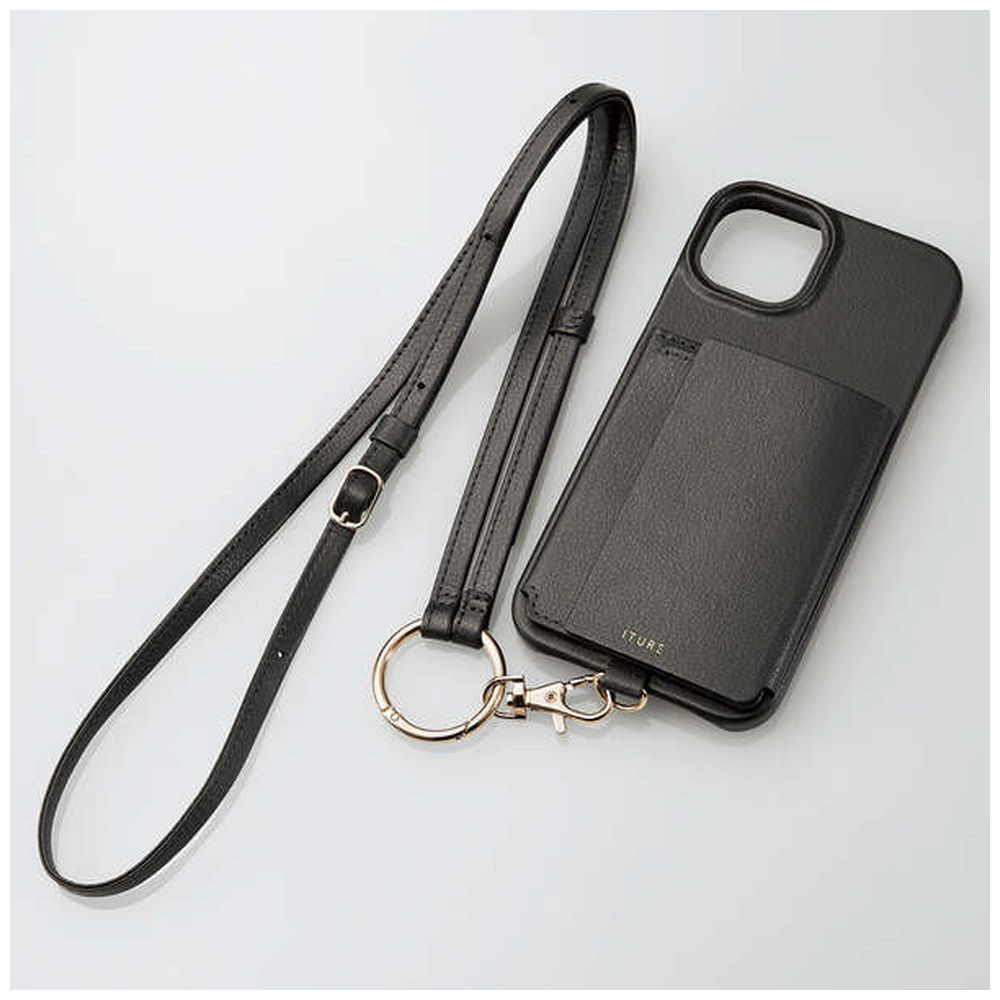 iPhone2022 6.7inch 2眼 レザーケース/オープン/ITURE/ショルダーストラップ付き/ チャコールグレー PM-A22BPLOSSGY