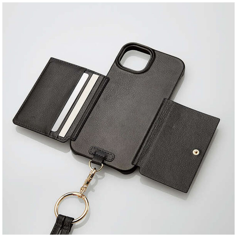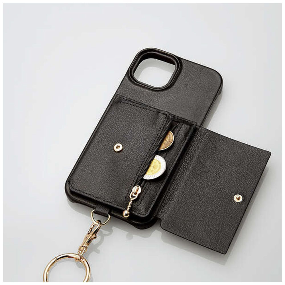 持ち運びに便利なショルダーストラップとコインケース、カードポケットもついたマルチに活躍するiPhone 14 Plus用ソフトレザーケースです。