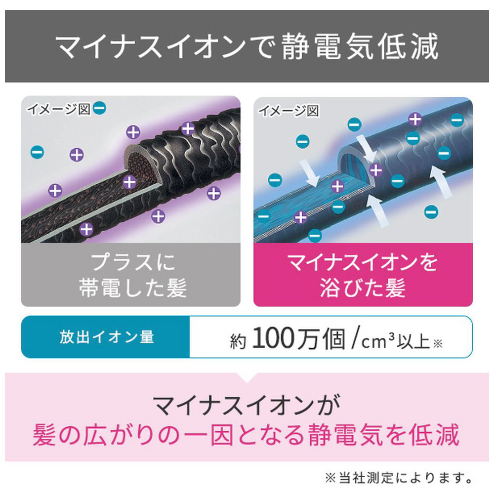 ■マイナスイオンで髪の広がりの一因となる静電気を低減