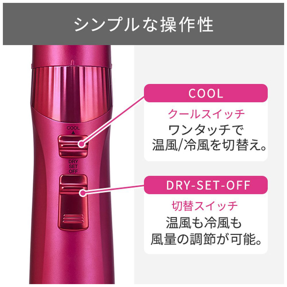 温風⇔冷風をワンタッチで簡単に切替えでき、冷風を瞬時に当てることでセットを長持ちさせます。