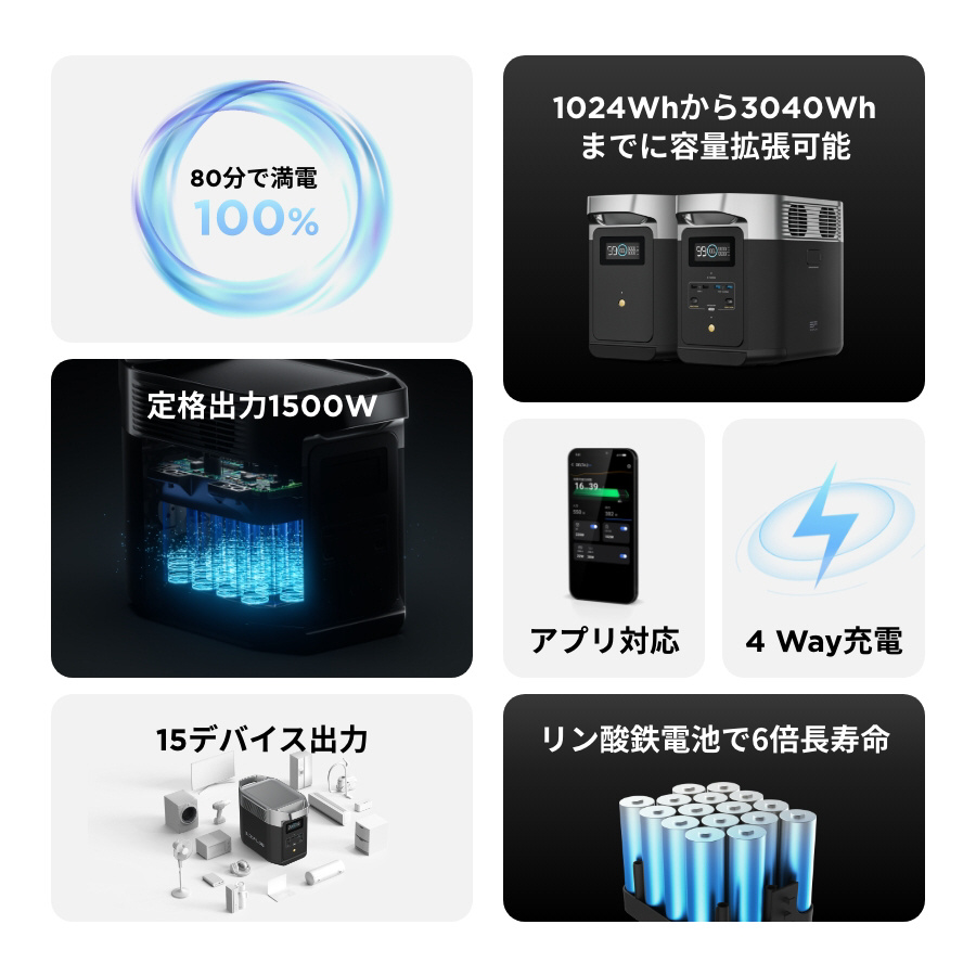 ポータブル電源 DELTA2 ZMR330-JP [リン酸鉄リチウムイオン電池 /15出力 /AC・DC・USB-C充電・ソーラー(別売) /USB Power Delivery対応]