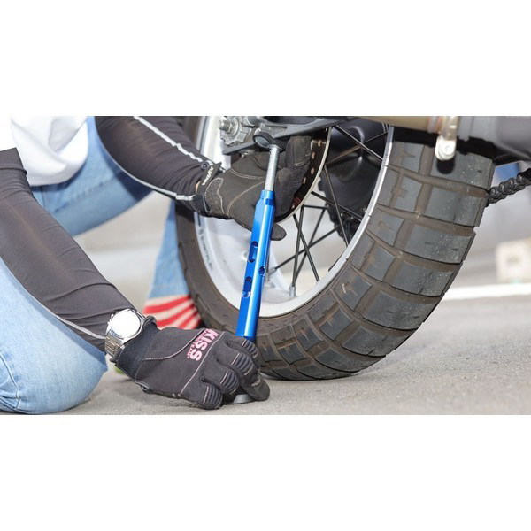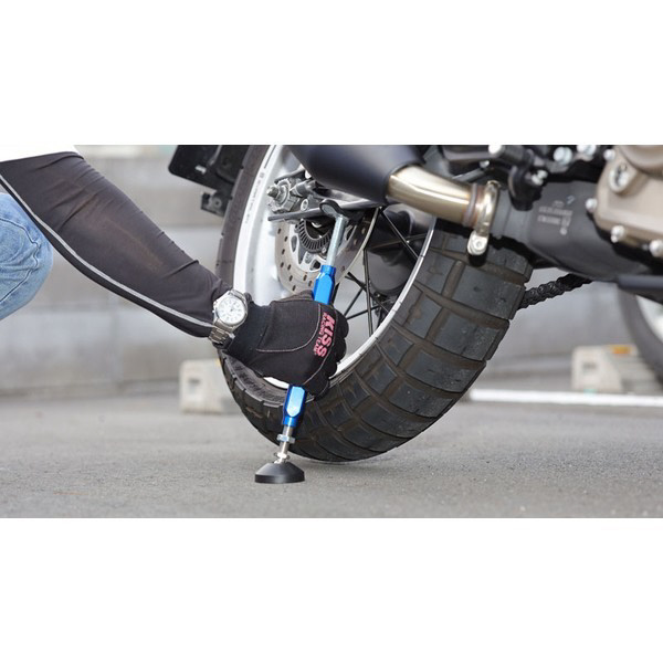 サイドスタンドと併用し、スイングアーム右側に掛け、本体を回転することで、後輪を浮かすことが可能です。