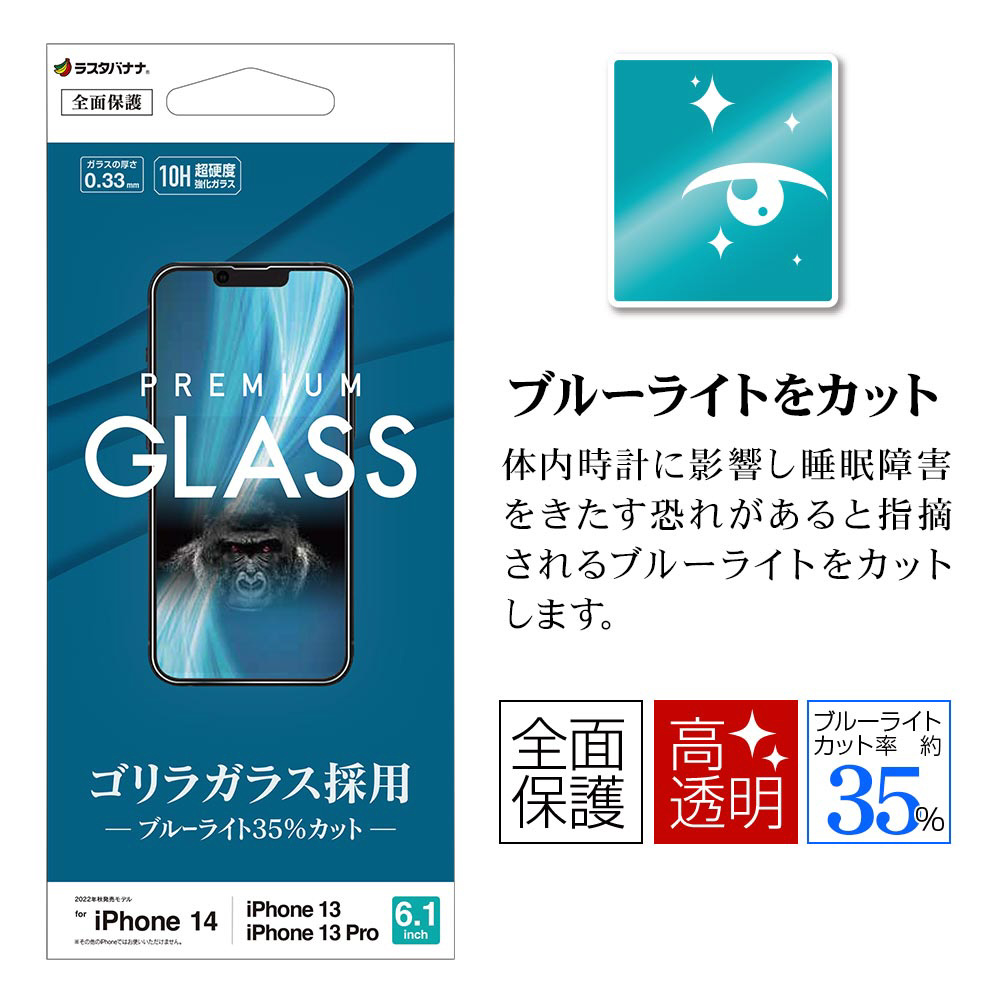 iPhone 14 / 13 / 13 Pro ガラスフィルム ゴリラガラス ブルーライトカット 高光沢 クリア GGE3497IP261 【864】