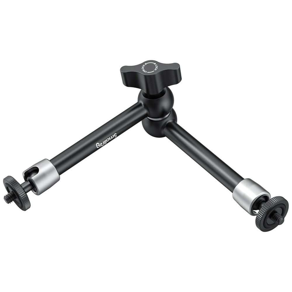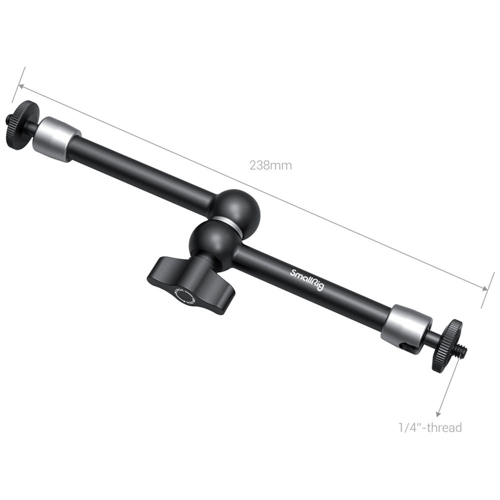 両端に1/4”ネジ構造が付いているため、片端の1/4”ネジにモニターを取り付け、もう片端をカメラケージやNATOレール1973、15mmロッド1182およびクイックリリースロッドクランプ1976などの1/4”-20ネジ穴を備えたアクセサリーに取り付けられます。