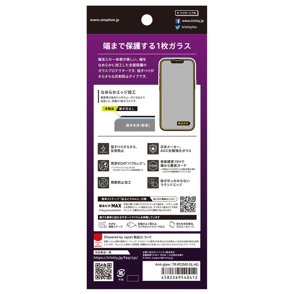 端末との一体感が美しい、端をなめらかに加工した全面保護のガラスプロテクター。指すべりがさらさらなタイプ。