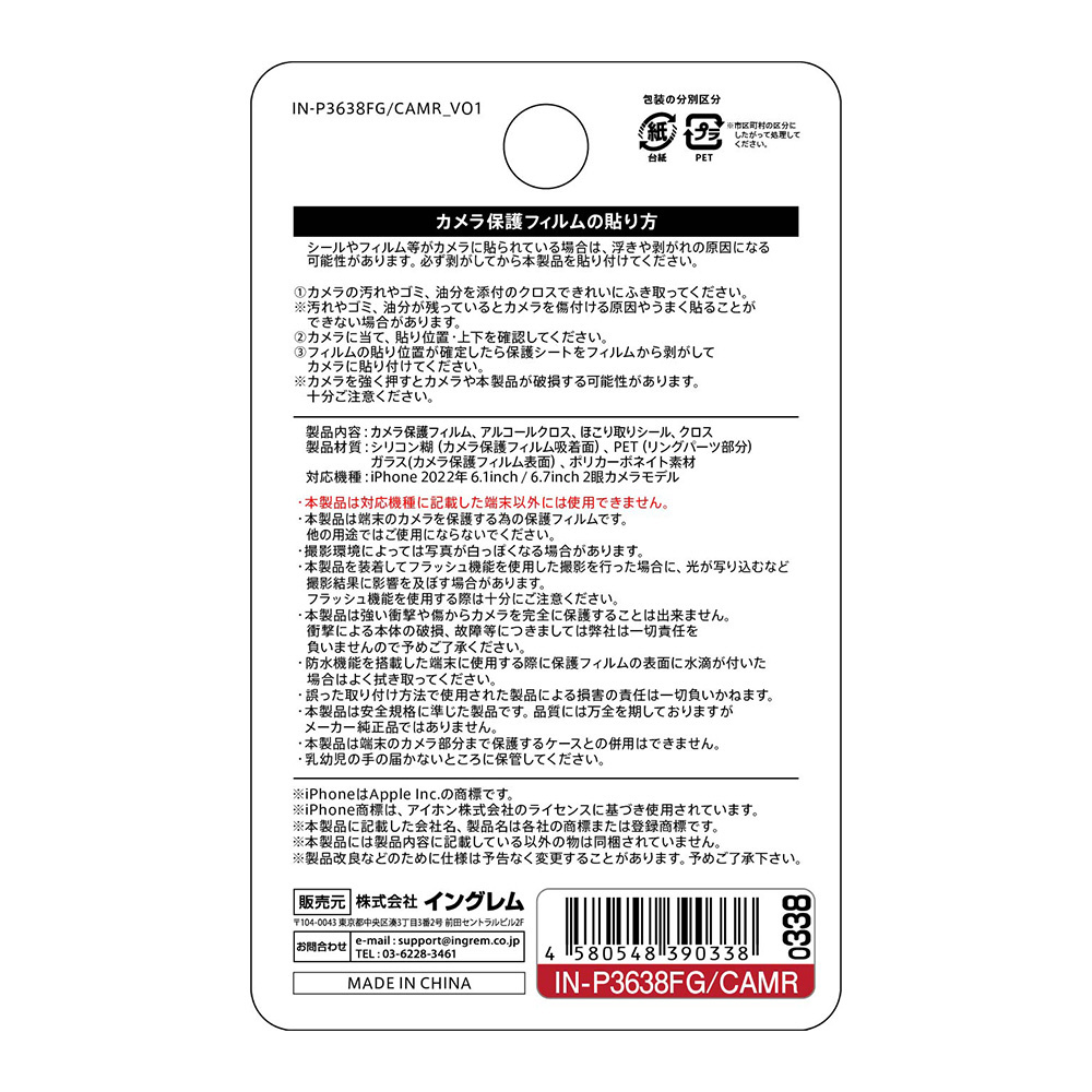 | 商品名 | iPhone 14 / 14 Plus ガラスフィルム カメラ メタリック 10H 2眼カメラモデル/ レッド IN-P3638FG/CAMR 【852】 |
