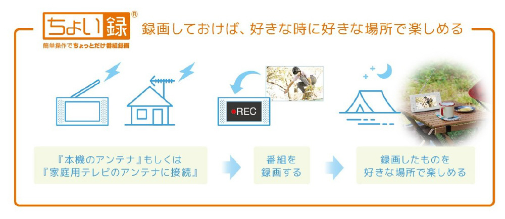 録画機能付き5インチ防水フルセグテレビ。日常、アウトドア、災害時など色々なシーンで使用可能