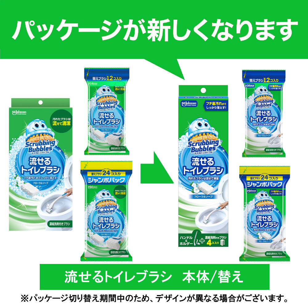 | 商品名 | ScrubbingBubbles(スクラビングバブル)流せるトイレブラシ つけかえ用ブラシ ジャンボパック 24個 |