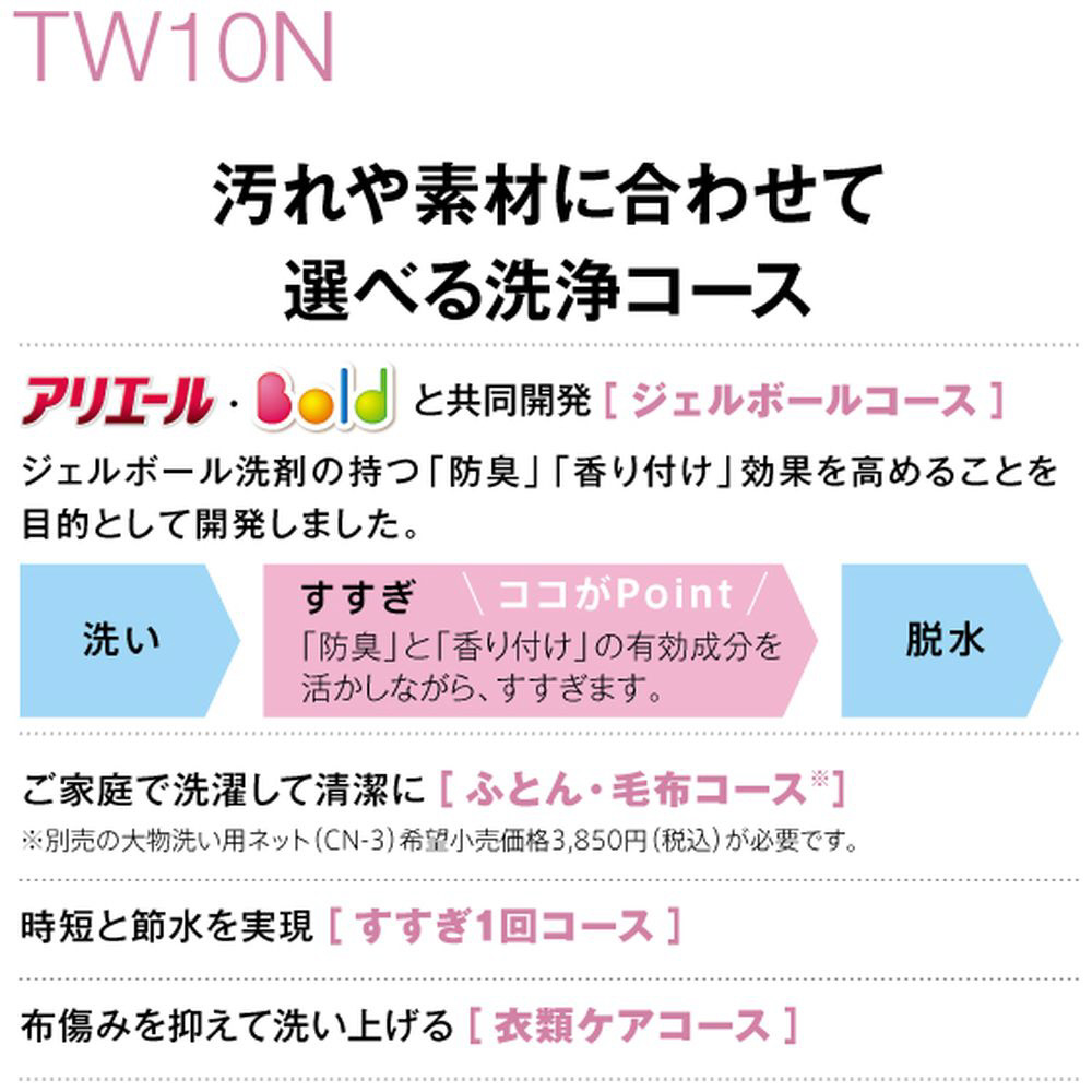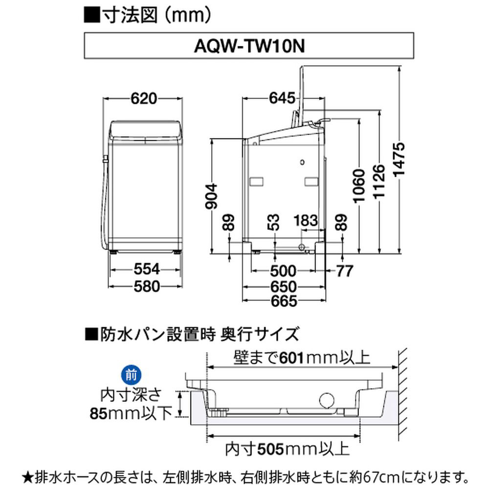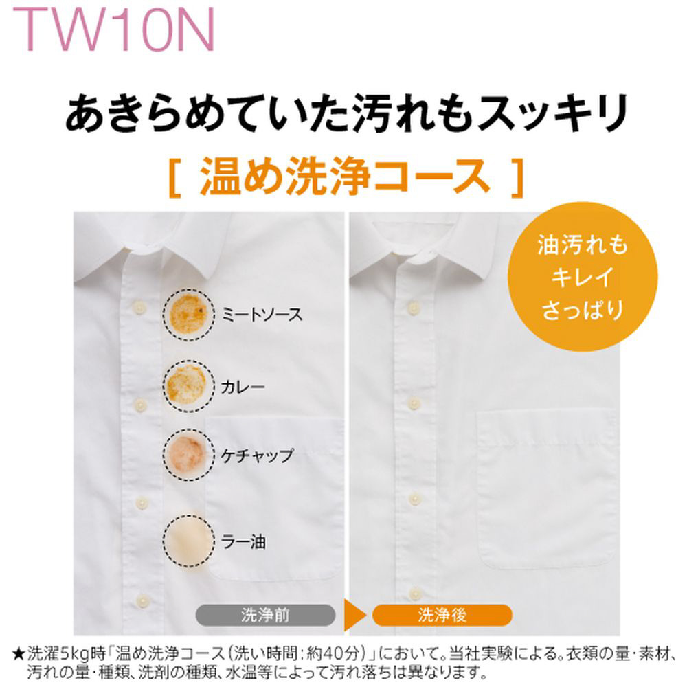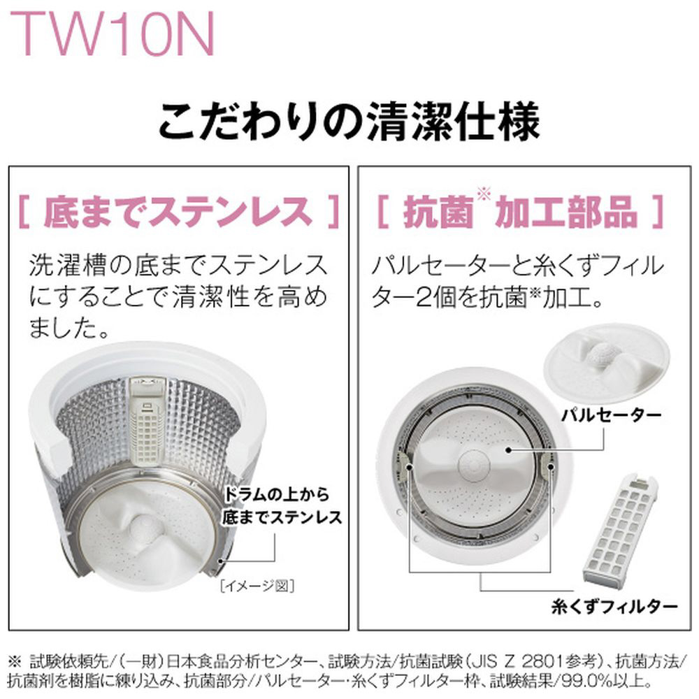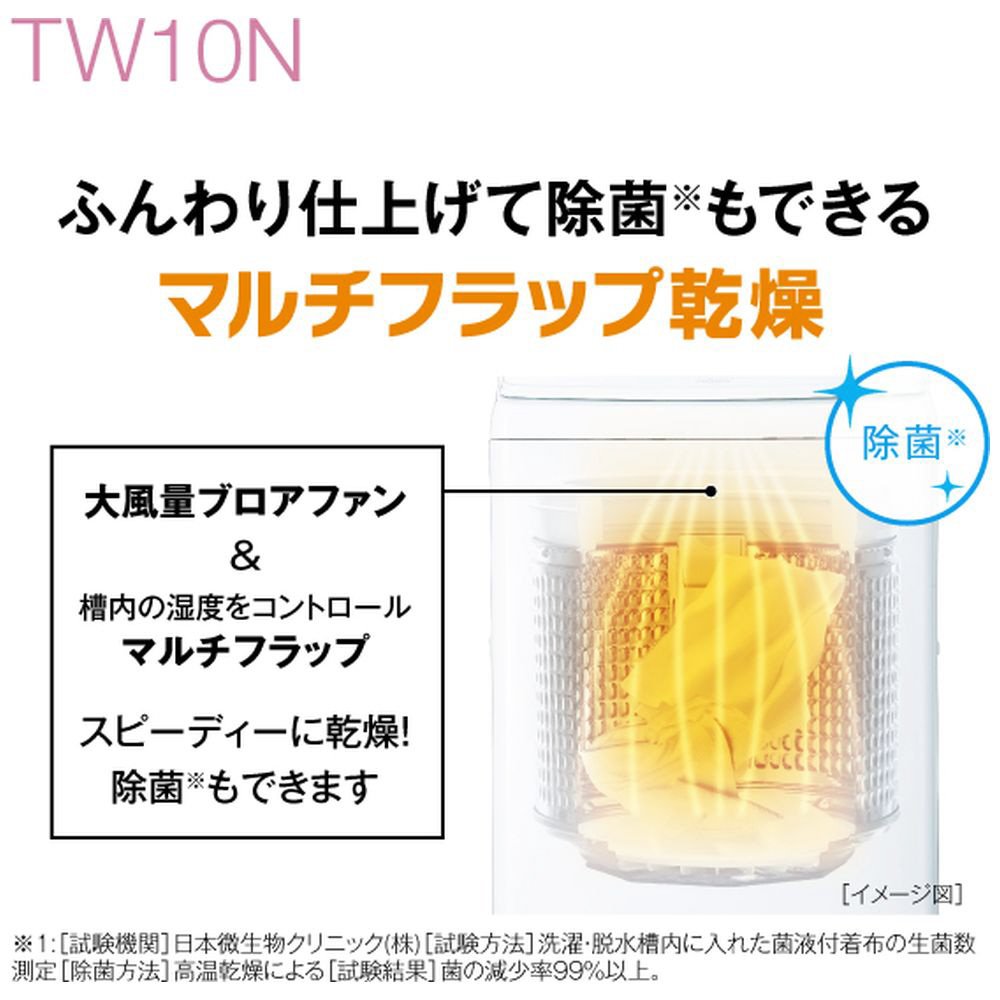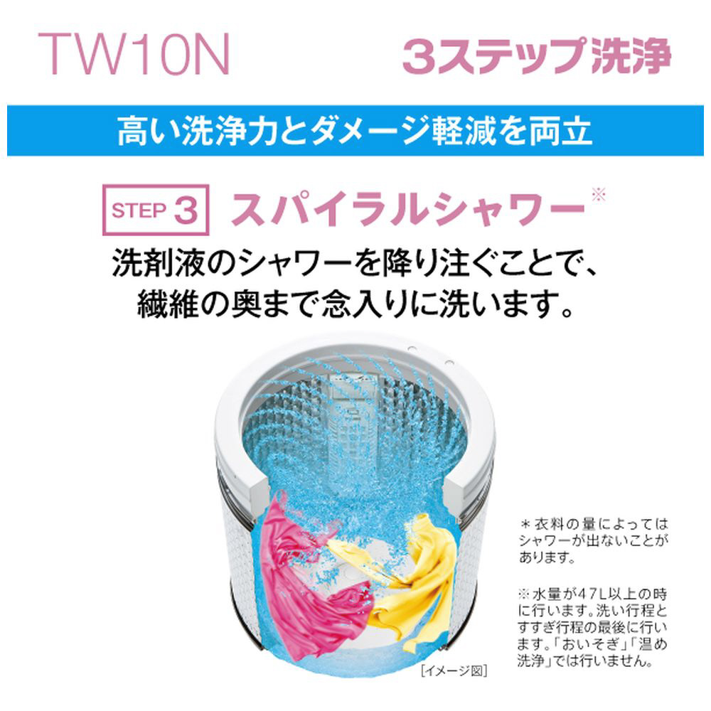 | 商品名 | 縦型洗濯乾燥機 ホワイト AQW-TW10N-W [洗濯10.0kg /乾燥5.0kg /ヒーター乾燥(排気タイプ) /上開き] |
