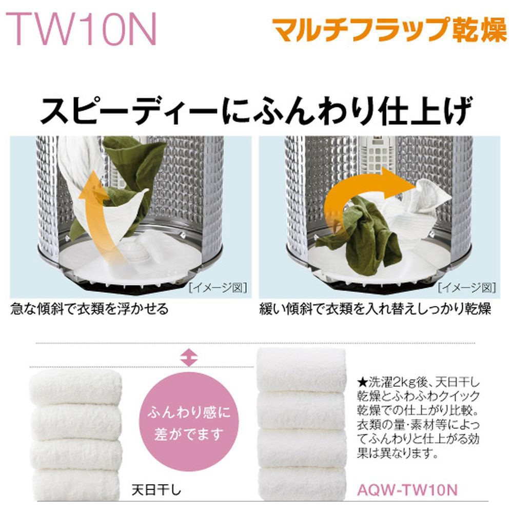 縦型洗濯乾燥機 ホワイト AQW-TW10N-W [洗濯10.0kg /乾燥5.0kg /ヒーター乾燥(排気タイプ) /上開き]
