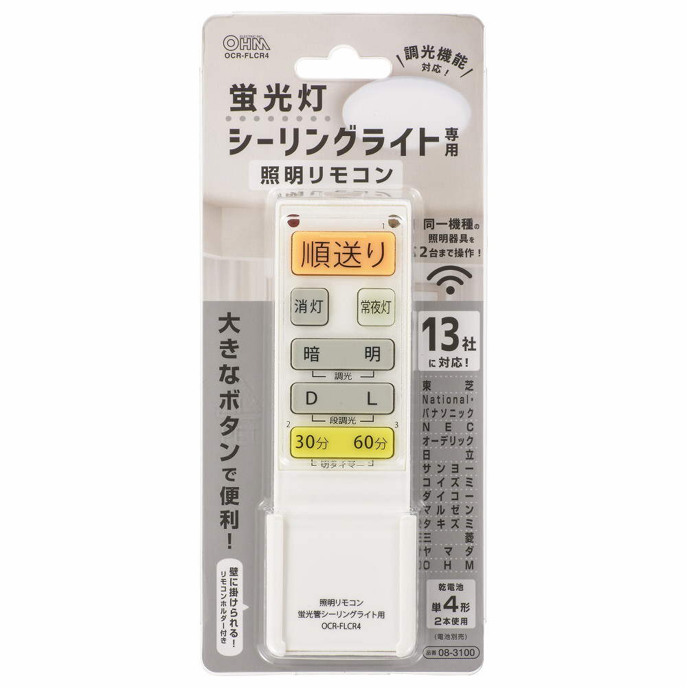 | 商品名 | 蛍光灯シーリングライト専用照明リモコン 国内13メーカー対応 調光機能対応 OCR-FLCR4 |