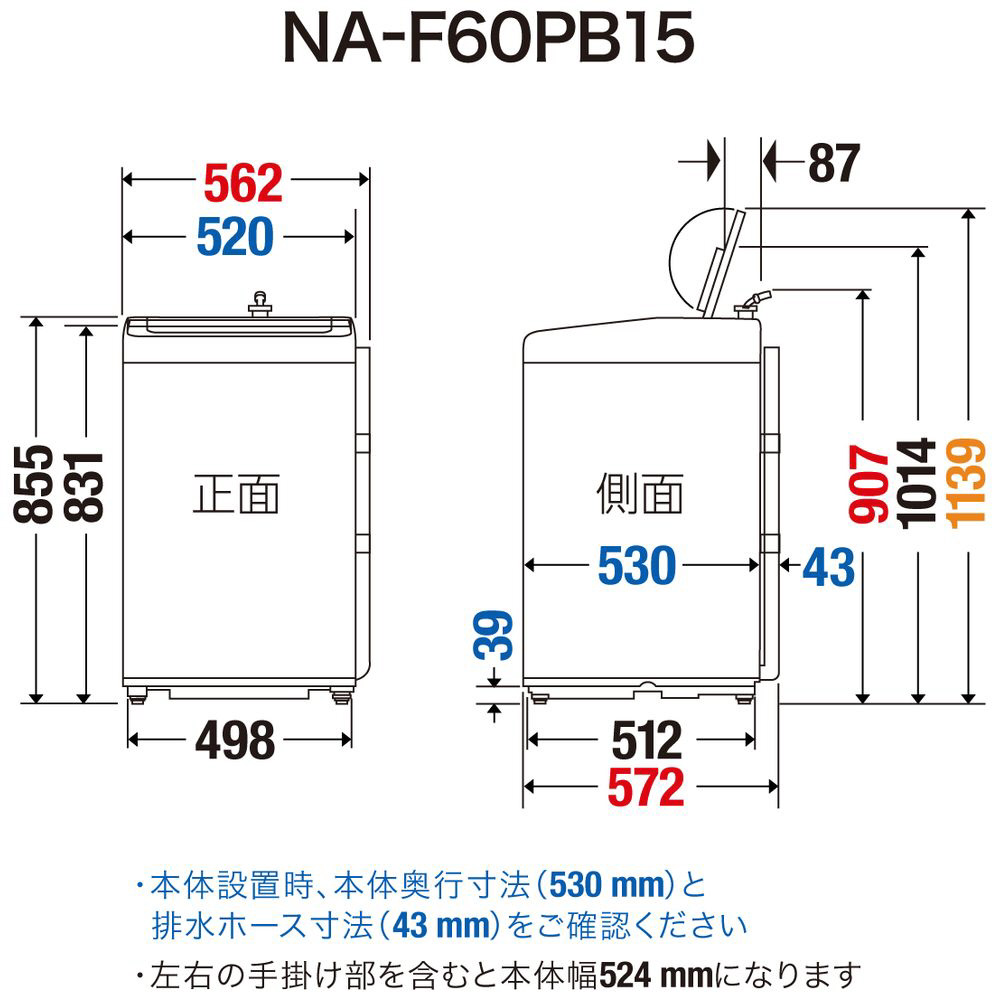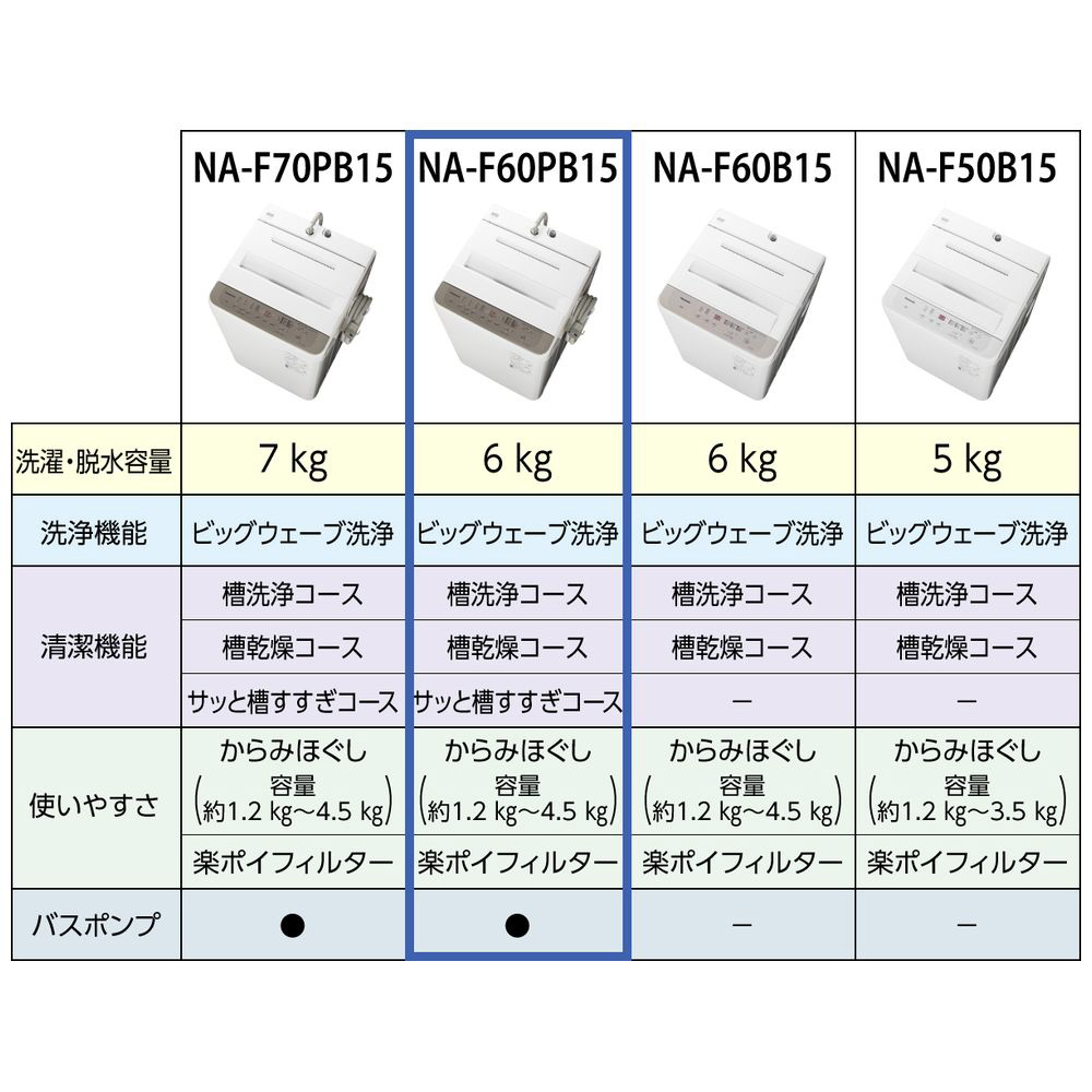 全自動洗濯機 Fシリーズ ニュアンスブラウン NA-F60PB15-T [洗濯6.0kg /乾燥機能無 /上開き]