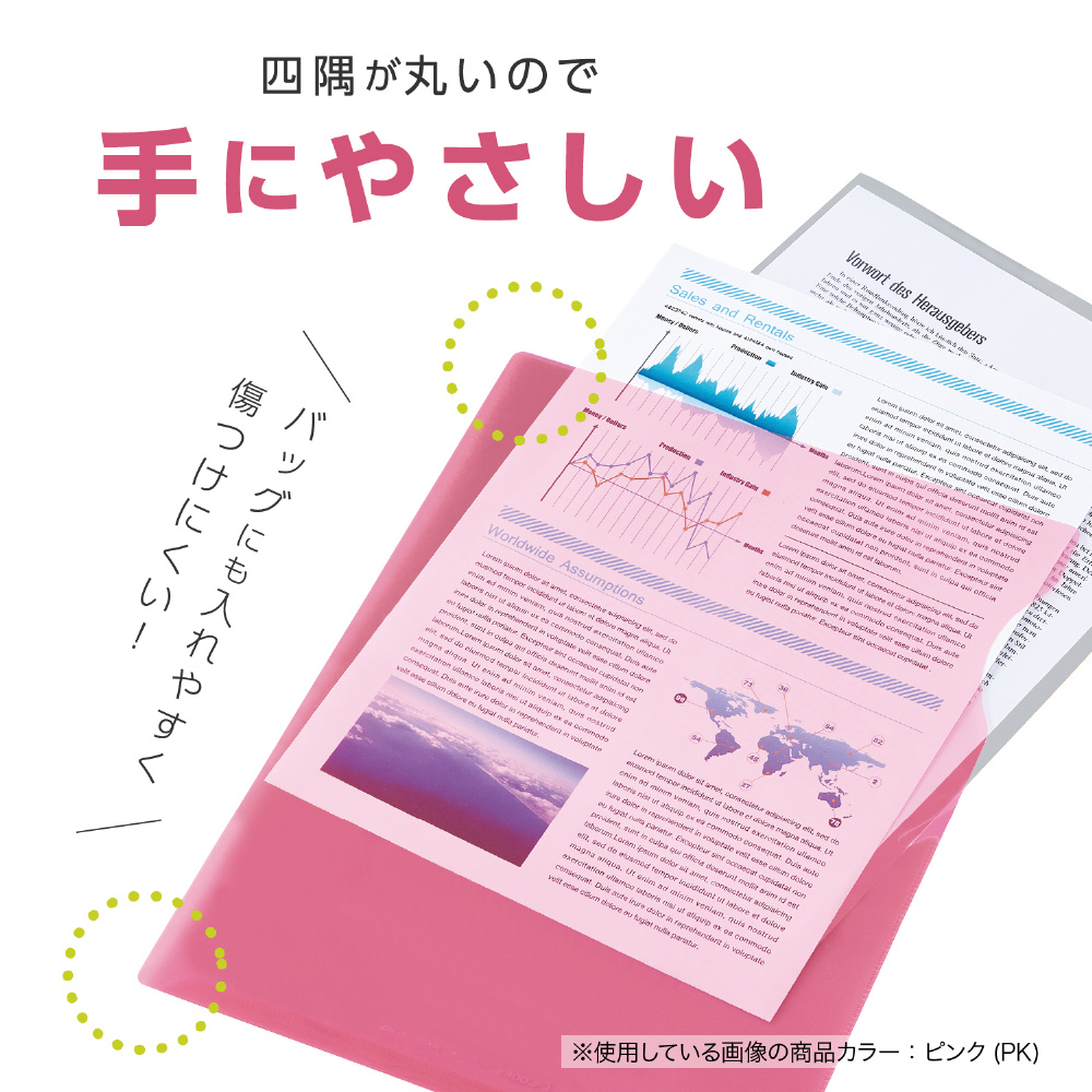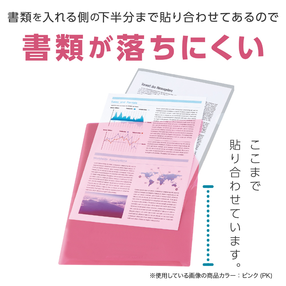 ハーフ溶着:ハーフ溶着で、書類が落ちにくくなっています。