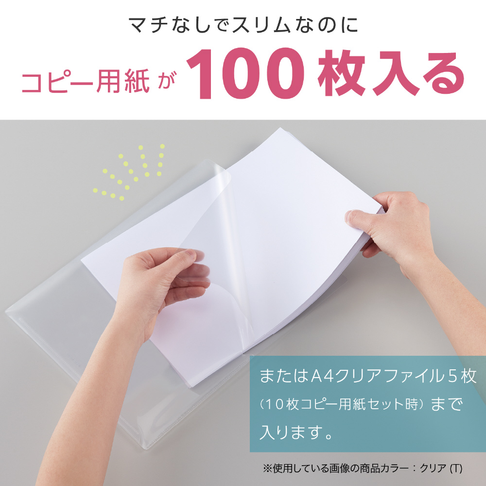 A4ワイド幅:横幅が235mmのA4ワイド幅なので、市販のクリアホルダーがそのまま収容できます。