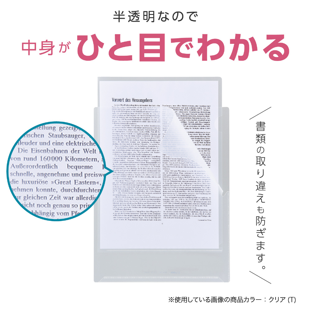 入れた書類が抜け落ちにくい、A4ワイド幅のクリアホルダー