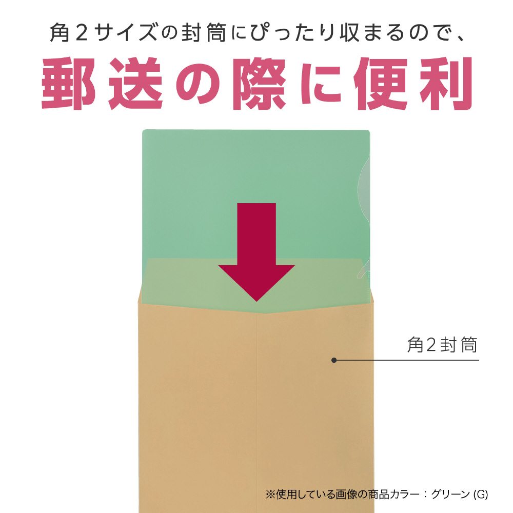 角2封筒に収まる:横幅が235mmで、角2サイズの封筒にピッタリ収まります。