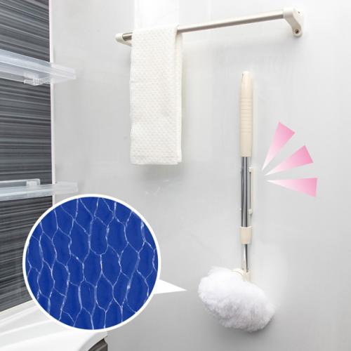 網目状の糸が水だけで浴槽の汚れをかき取りキレイにします(洗剤不要)。おそうじ後は浴室の壁に磁石でピタッと貼りつくので、場所を選ばず衛生的に収納できます。