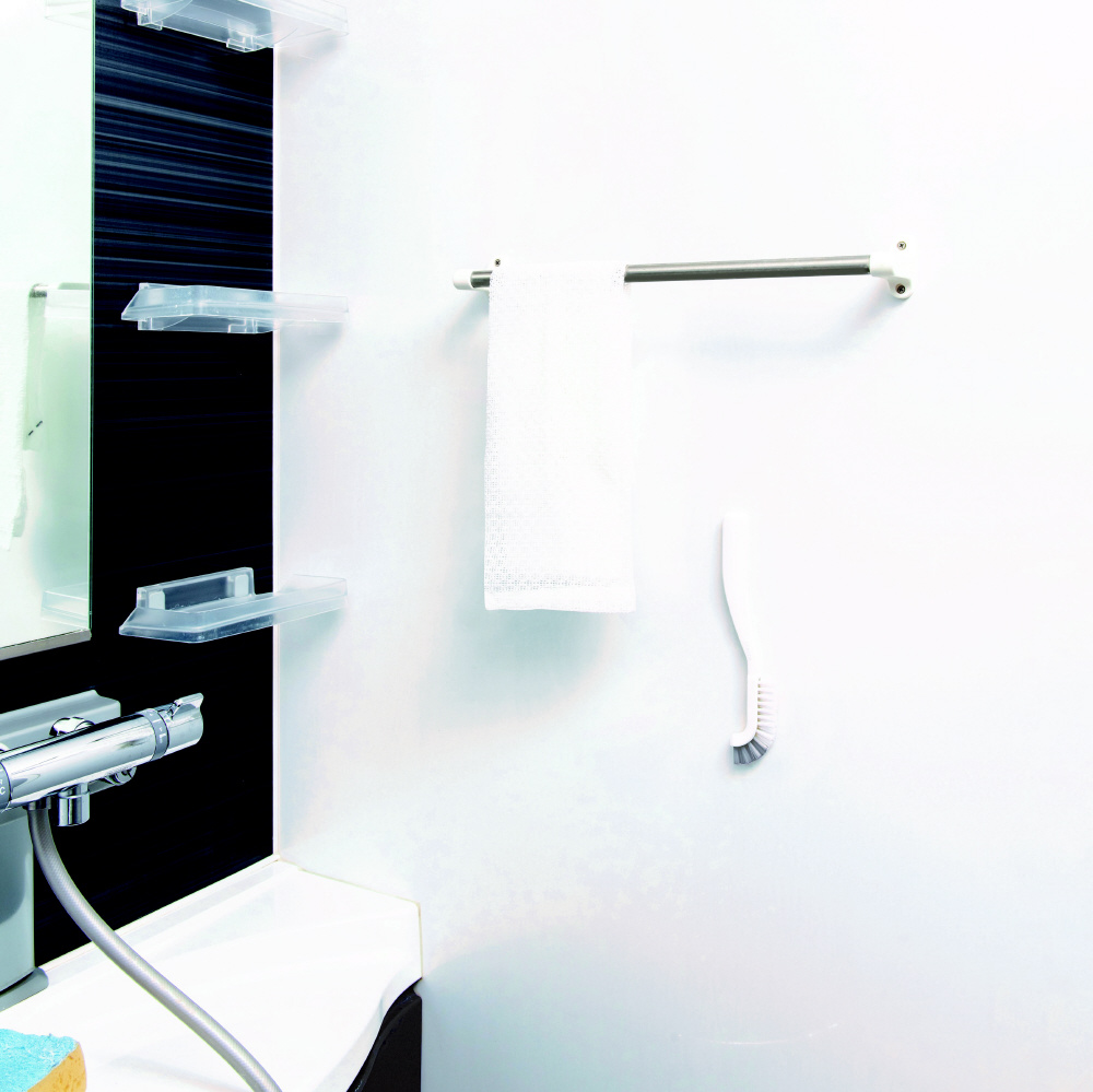 * 鋼板を使用していない壁、タイルなど磁石がつかない浴室の壁面には貼り付きません。