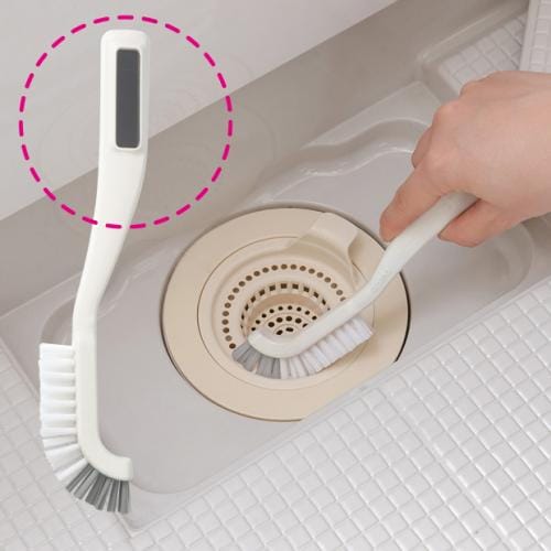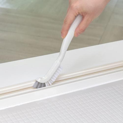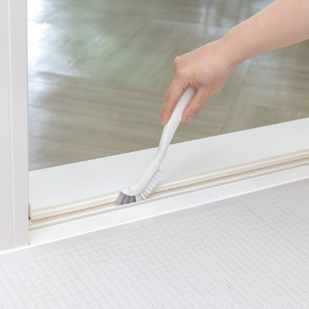スリムなヘッド幅で、溝や狭いすき間もお掃除できます。先端の硬めブラシで角に溜まった汚れやこびりついた汚れをかき出し、やわらかめのブラシで汚れをこすり落とします。
