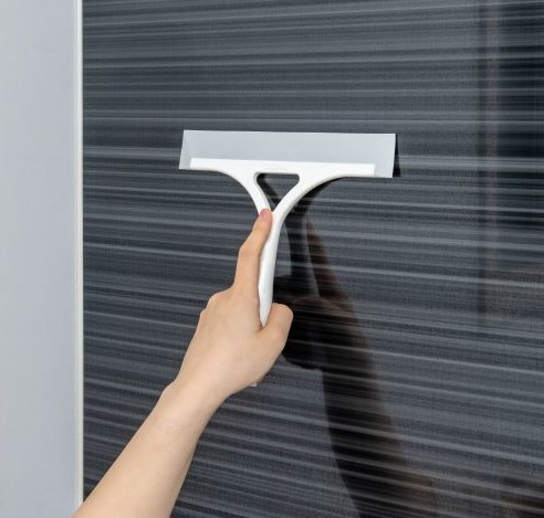 しなやかな水切りゴムが壁面・曲面にフィットして水気をスッキリ除去します。お掃除後は浴室の壁に磁石でピタッと貼り付くので、場所を選ばず衛生的に収納できます。