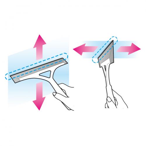 上下左右どちらにも水が切れるフラットなグリップ形状です。表裏がないため使いやすく、水切りゴムからグリップにかけて傾斜がついていないぶん手首に負担をかけることなく使用できます。