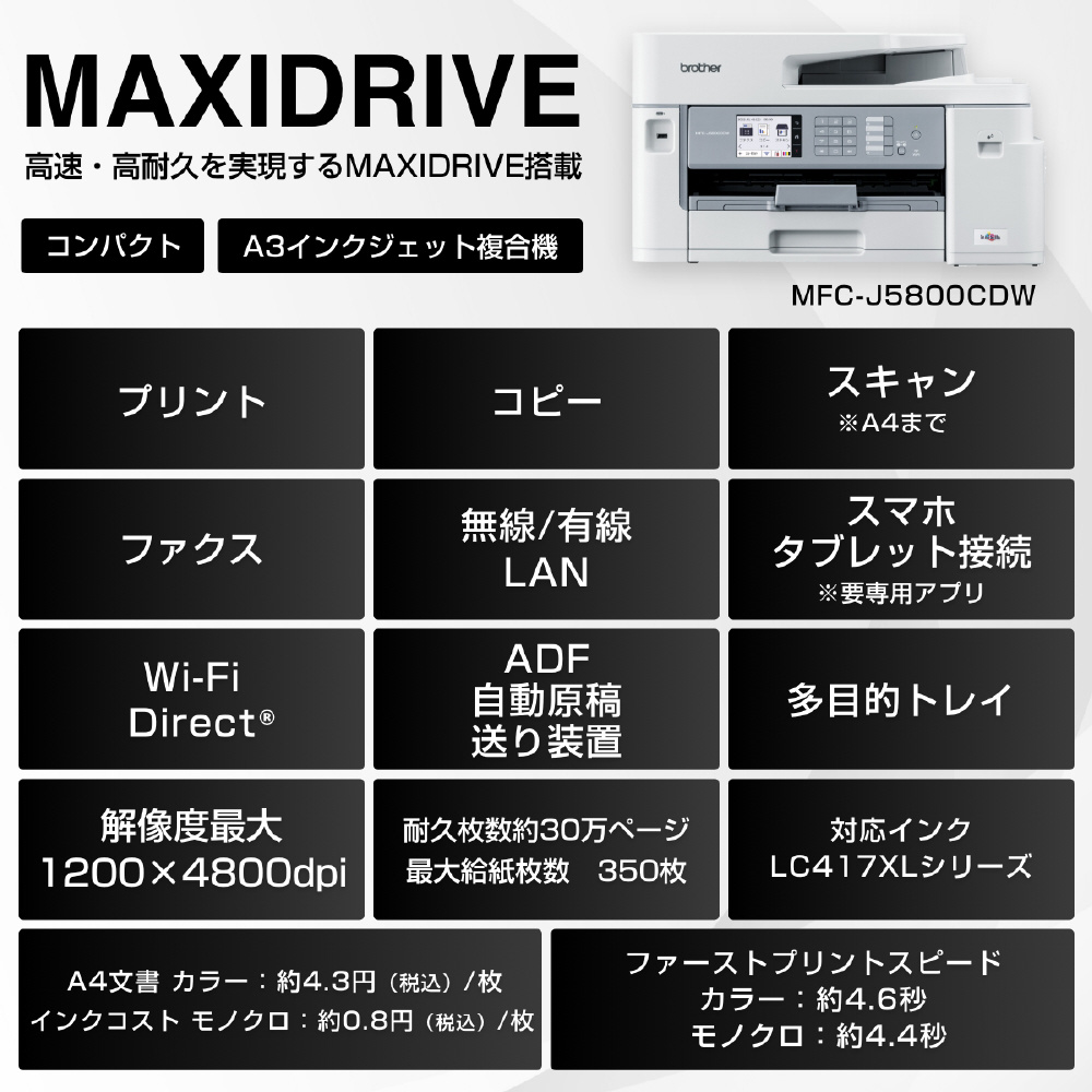 カラー約4.3円/枚、モノクロ約0.8円/枚。印刷コストの削減に貢献します。