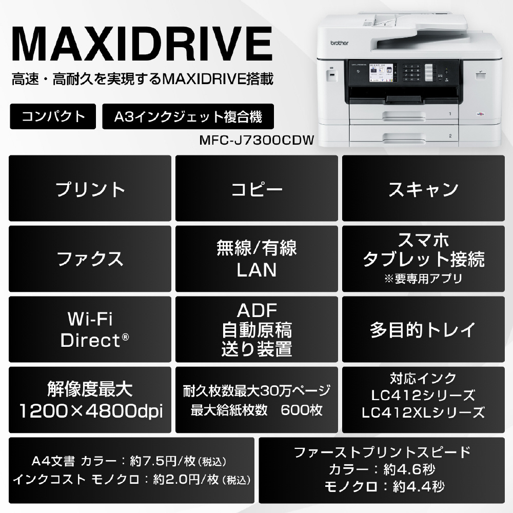 MFC-J7300CDW インクジェット複合機 MAXIDRIVE(マキシドライブ) [L判〜A3] 【864】