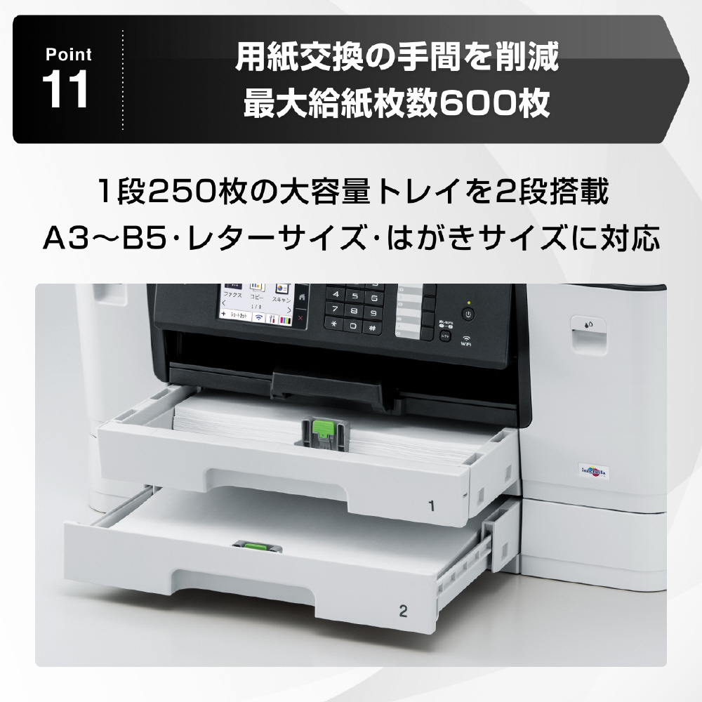 2段用紙トレイ&背面多目的トレイを搭載したA3対応ハイスペック複合機。