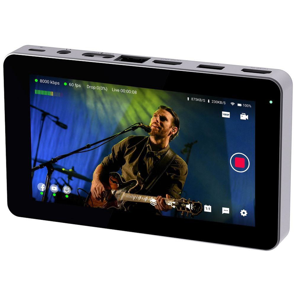 YoloBox Miniは、エンコーダー、モニター、レコーダーが一つになり、バッテリー内蔵で4G LTE、WiFi、イーサネットを標準サポートするマルチストリーマーを兼ね備えた1080p60 フルHD対応のライブブロードキャストデバイスです。