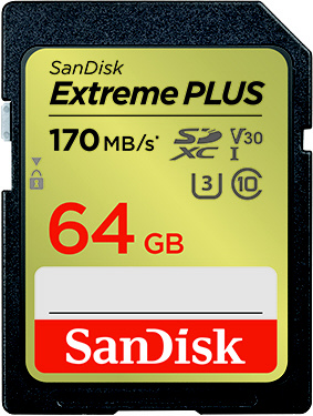 4K UHD動画と連続バーストモード写真に最適なサンディスク エクストリーム プラス SDXC UHS-I メモリーカード。