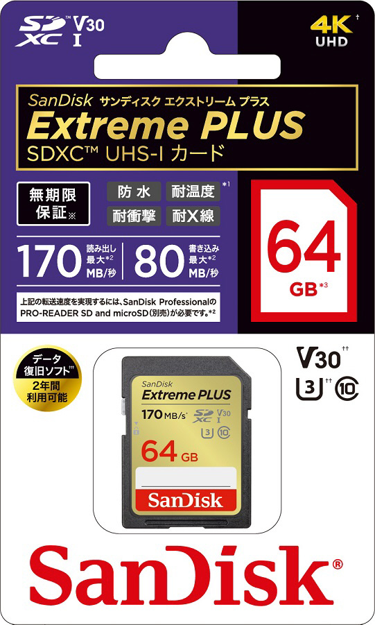 SanDisk Extreme PLUS SDXC UHS-Iカード 64GB SDSDXWH-064G-JBJCP [Class10 /64GB]